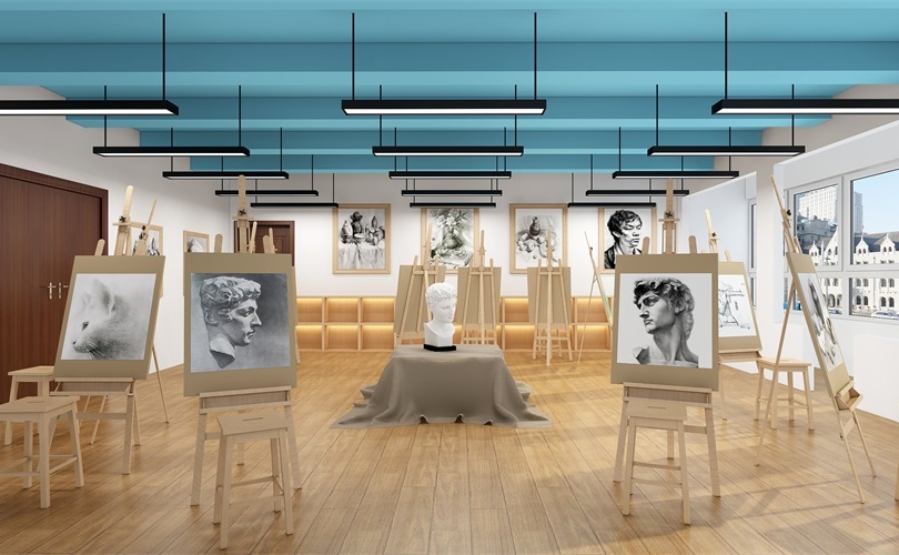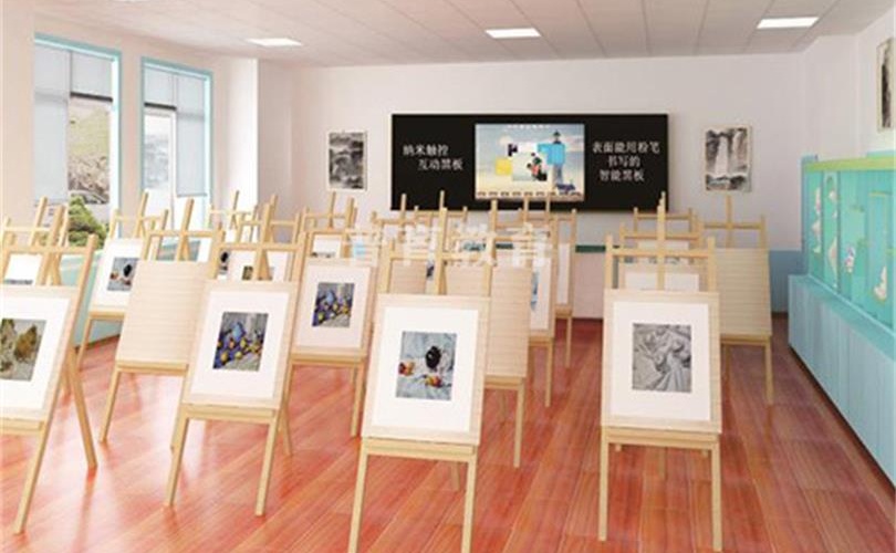 學(xué)科專用教室體現(xiàn)不同學(xué)科的需求及特色、匹配不同學(xué)科的教學(xué)內(nèi)容。增加和優(yōu)化不同學(xué)科需要的專用教學(xué)設(shè)備,充分利用現(xiàn)有空間及資源,挄照學(xué)科分類和課程主題對(duì)教室和實(shí)驗(yàn)室進(jìn)行改造,打造成學(xué)科專用教室。學(xué)科專用教室對(duì)于完善學(xué)科體系建設(shè),提高學(xué)生的學(xué)習(xí)興趣和促進(jìn)教師的教學(xué)研究。美術(shù)專用教室主要是學(xué)生進(jìn)行水彩、水粉、油畫、素描等繪畫學(xué)習(xí)、練習(xí)實(shí)踐活動(dòng)的場(chǎng)所。配置相應(yīng)教師及學(xué)生專用畫板畫架、繪畫工具、靜物燈、靜物臺(tái)、教師及學(xué)生作品展示區(qū)、置物柜等。